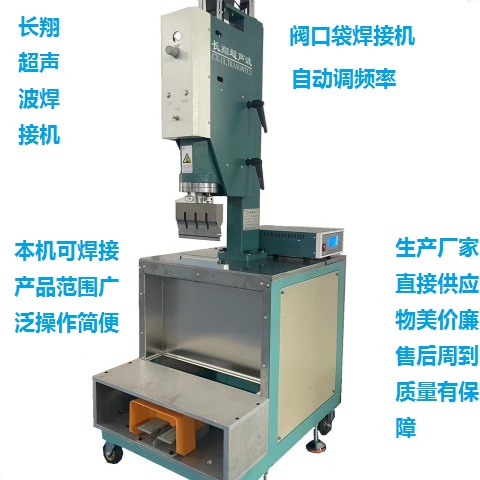 阀口袋超声波焊接机:本机又称超声波塑料焊接机,阀口袋超声波封口机,超声波封边机,超声波塑焊机,超音波焊接机等,本机属于一款自动追频能量模式超声波焊接机,本机适合应用于产品范围非常广泛,环保洁净,焊接时间短节约人工节省生产成本。